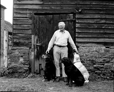 Ted Parker with some of the dogs. Weston House, Herefordshire.